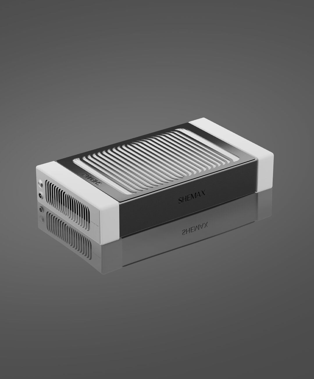 SHEMAX dust collectors work by utilizing two types of manicure hoods - the tabletop style PRO and the table-mounted style V PRO. A manicure hood is a device designed to absorb tiny and hazardous dust particles during the removal of gel polish by a nail technician. By effectively capturing and containing the dust, it ensures the health and safety of both the client and the manicurist. This functionality not only protects against potential health hazards but also enhances the overall efficiency and quality of the manicure process.